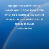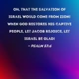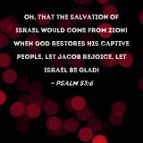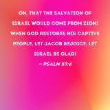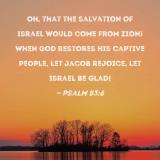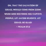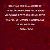 Oh, that the salvation of Israel would come from Zion! When God restores His captive people, let Jacob rejoice, let Israel be glad!