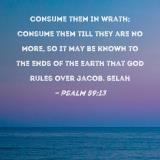 Consume them in wrath; consume them till they are no more, so it may be known to the ends of the earth that God rules over Jacob. Selah