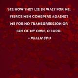 See how they lie in wait for me. Fierce men conspire against me for no transgression or sin of my own, O LORD.