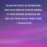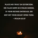 Place no trust in extortion, or false hope in stolen goods. If your riches increase, do not set your heart upon them.