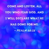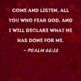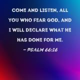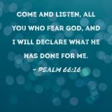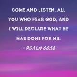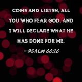 Come and listen, all you who fear God, and I will declare what He has done for me.