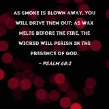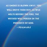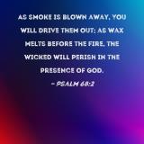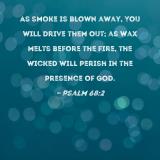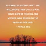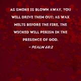 As smoke is blown away, You will drive them out; as wax melts before the fire, the wicked will perish in the presence of God.