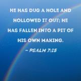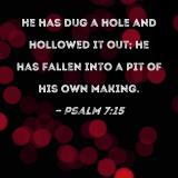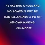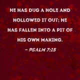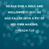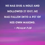 He has dug a hole and hollowed it out; he has fallen into a pit of his own making.