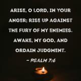 Arise, O LORD, in Your anger; rise up against the fury of my enemies. Awake, my God, and ordain judgment.