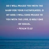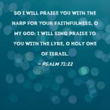 So I will praise You with the harp for Your faithfulness, O my God; I will sing praise to You with the lyre, O Holy One of Israel.