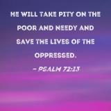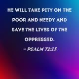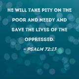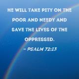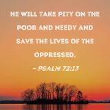 He will take pity on the poor and needy and save the lives of the oppressed.