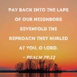 Pay back into the laps of our neighbors sevenfold the reproach they hurled at You, O Lord.