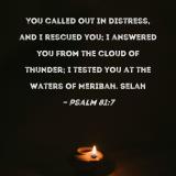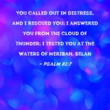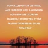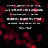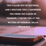 You called out in distress, and I rescued you; I answered you from the cloud of thunder; I tested you at the waters of Meribah. Selah