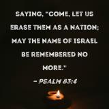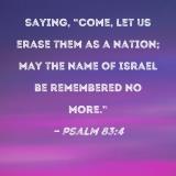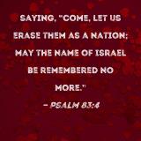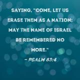 saying, "Come, let us erase them as a nation; may the name of Israel be remembered no more."