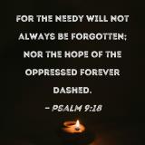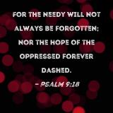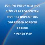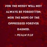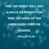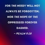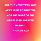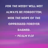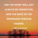 For the needy will not always be forgotten; nor the hope of the oppressed forever dashed.