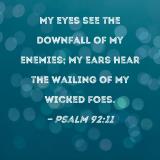 My eyes see the downfall of my enemies; my ears hear the wailing of my wicked foes.