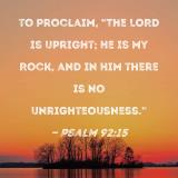 to proclaim, "The LORD is upright; He is my Rock, and in Him there is no unrighteousness."