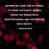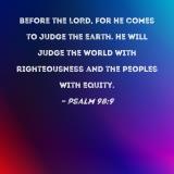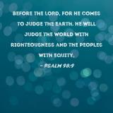 before the LORD, for He comes to judge the earth. He will judge the world with righteousness and the peoples with equity.