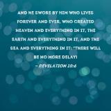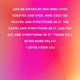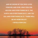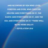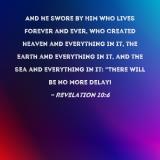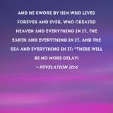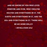 And he swore by Him who lives forever and ever, who created heaven and everything in it, the earth and everything in it, and the sea and everything in it: "There will be no more delay!