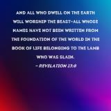 And all who dwell on the earth will worship the beast--all whose names have not been written from the foundation of the world in the Book of Life belonging to the Lamb who was slain.