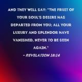 And they will say: "The fruit of your soul's desire has departed from you; all your luxury and splendor have vanished, never to be seen again."