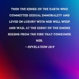 Then the kings of the earth who committed sexual immorality and lived in luxury with her will weep and wail at the sight of the smoke rising from the fire that consumes her.