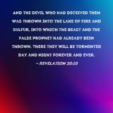 And the devil who had deceived them was thrown into the lake of fire and sulfur, into which the beast and the false prophet had already been thrown. There they will be tormented day and night forever and ever.