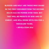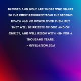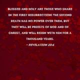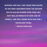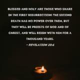 Blessed and holy are those who share in the first resurrection! The second death has no power over them, but they will be priests of God and of Christ, and will reign with Him for a thousand years.
