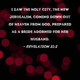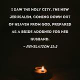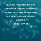 I saw the holy city, the new Jerusalem, coming down out of heaven from God, prepared as a bride adorned for her husband.