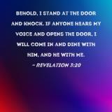 Behold, I stand at the door and knock. If anyone hears My voice and opens the door, I will come in and dine with him, and he with Me.