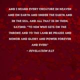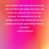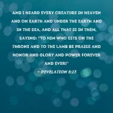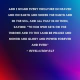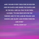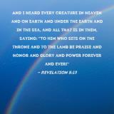 And I heard every creature in heaven and on earth and under the earth and in the sea, and all that is in them, saying: "To Him who sits on the throne and to the Lamb be praise and honor and glory and power forever and ever!"