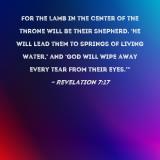 For the Lamb in the center of the throne will be their shepherd. 'He will lead them to springs of living water,' and 'God will wipe away every tear from their eyes.'"