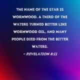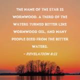 The name of the star is Wormwood. A third of the waters turned bitter like wormwood oil, and many people died from the bitter waters.