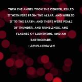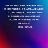 Then the angel took the censer, filled it with fire from the altar, and hurled it to the earth; and there were peals of thunder, and rumblings, and flashes of lightning, and an earthquake.