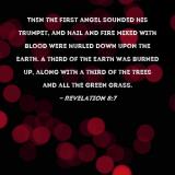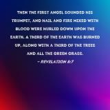 Then the first angel sounded his trumpet, and hail and fire mixed with blood were hurled down upon the earth. A third of the earth was burned up, along with a third of the trees and all the green grass.