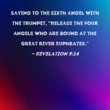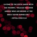 saying to the sixth angel with the trumpet, "Release the four angels who are bound at the great river Euphrates."