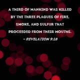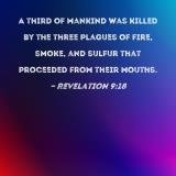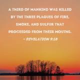 A third of mankind was killed by the three plagues of fire, smoke, and sulfur that proceeded from their mouths.