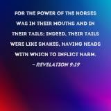 For the power of the horses was in their mouths and in their tails; indeed, their tails were like snakes, having heads with which to inflict harm.