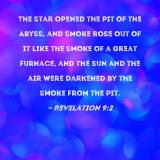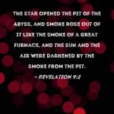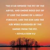 The star opened the pit of the Abyss, and smoke rose out of it like the smoke of a great furnace, and the sun and the air were darkened by the smoke from the pit.