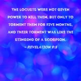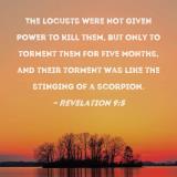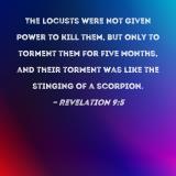 The locusts were not given power to kill them, but only to torment them for five months, and their torment was like the stinging of a scorpion.