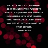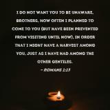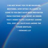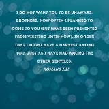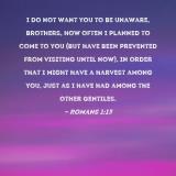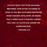 I do not want you to be unaware, brothers, how often I planned to come to you (but have been prevented from visiting until now), in order that I might have a harvest among you, just as I have had among the other Gentiles.