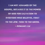 I am not ashamed of the gospel, because it is the power of God for salvation to everyone who believes, first to the Jew, then to the Greek.