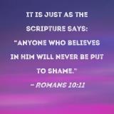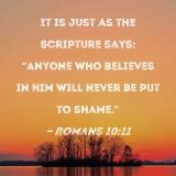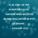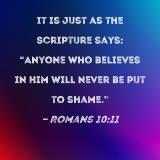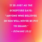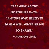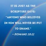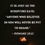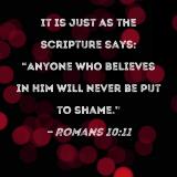 It is just as the Scripture says: "Anyone who believes in Him will never be put to shame."