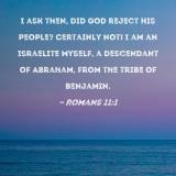 I ask then, did God reject His people? Certainly not! I am an Israelite myself, a descendant of Abraham, from the tribe of Benjamin.