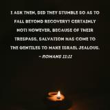 I ask then, did they stumble so as to fall beyond recovery? Certainly not! However, because of their trespass, salvation has come to the Gentiles to make Israel jealous.