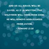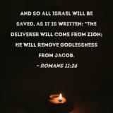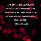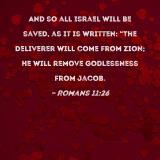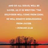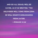 And so all Israel will be saved, as it is written: "The Deliverer will come from Zion; He will remove godlessness from Jacob.