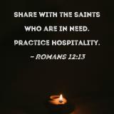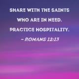 Share with the saints who are in need. Practice hospitality.