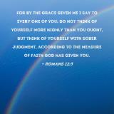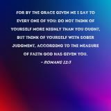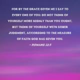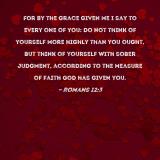 For by the grace given me I say to every one of you: Do not think of yourself more highly than you ought, but think of yourself with sober judgment, according to the measure of faith God has given you.