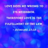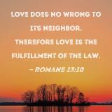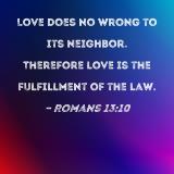 Love does no wrong to its neighbor. Therefore love is the fulfillment of the law.