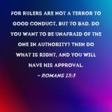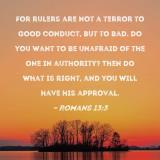 For rulers are not a terror to good conduct, but to bad. Do you want to be unafraid of the one in authority? Then do what is right, and you will have his approval.