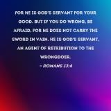 For he is God's servant for your good. But if you do wrong, be afraid, for he does not carry the sword in vain. He is God's servant, an agent of retribution to the wrongdoer.