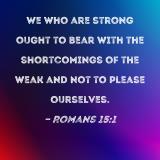 We who are strong ought to bear with the shortcomings of the weak and not to please ourselves.