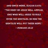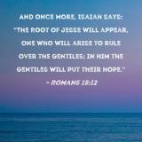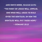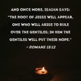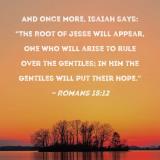 And once more, Isaiah says: "The Root of Jesse will appear, One who will arise to rule over the Gentiles; in Him the Gentiles will put their hope."