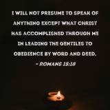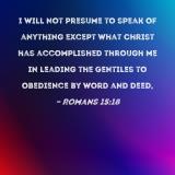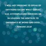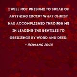 I will not presume to speak of anything except what Christ has accomplished through me in leading the Gentiles to obedience by word and deed,