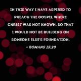 In this way I have aspired to preach the gospel where Christ was not known, so that I would not be building on someone else's foundation.